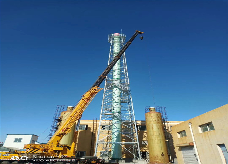 用于支撐玻璃鋼脫硫塔、尾氣排放管。典型案例:河北某鋼鐵廠燒結機脫硫煙囪(80米)。